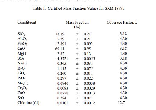 SRM 1889b 成分的認證值在表 1 中報告為收到時的質(zhì)量分數(shù) [1]。 NIST 認證值是 NIST 對其準確性具有最高置信度的值,因為所有已知或可疑的偏差來源都已被調(diào)查或考慮在內(nèi) [2]。認證值是根據(jù) NIST 和合作執(zhí)行的分析結(jié)果對真實值的當前最佳估計使用表 4 中列出的儀器和經(jīng)典測試方法的實驗室。